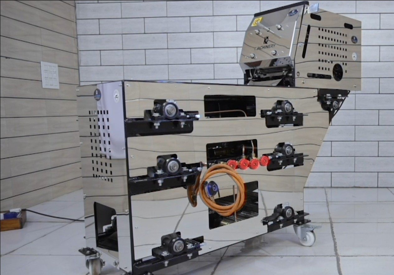 Introduction of The Roti Chapati Machine – The Small Roti (Chapati) Machine RCA-03 is a piece of equipment designed for making rotis or chapatis in a commercial or industrial setting. It is capable of producing a high volume of chapatis per hour, specifically in the range of 800 to 1000 chapatis per hour. This makes it a valuable addition to restaurants, catering businesses, and food production facilities where a large quantity of chapatis is required to meet customer demand.